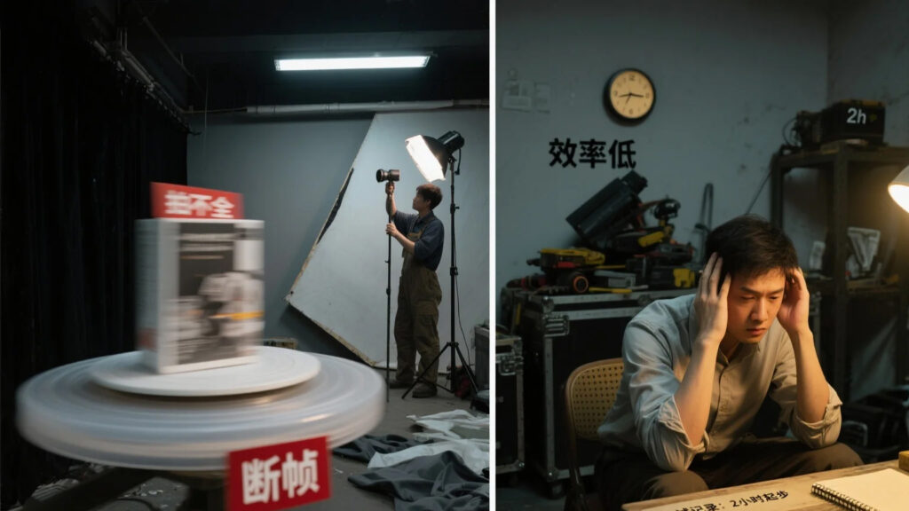效率低:一场拍摄调试2小时起步,创意还没落地,耐心先磨没了…