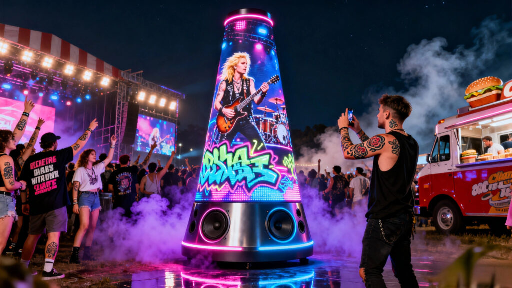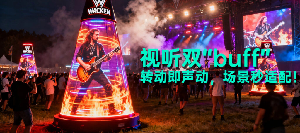 谁规定LED屏只负责“好看”?转盘王偏要打破——深度融合360度旋动屏显与定制音响,拒绝割裂。